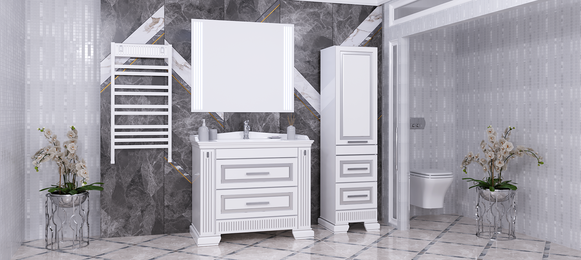 Коллекция Оникс белый - серебро
